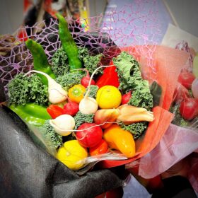 「ベジタブルフラワー」とは野菜や果物をまるでお花のように、ブーケやオブジェに仕立てた食べることの出来る新しいアートです。