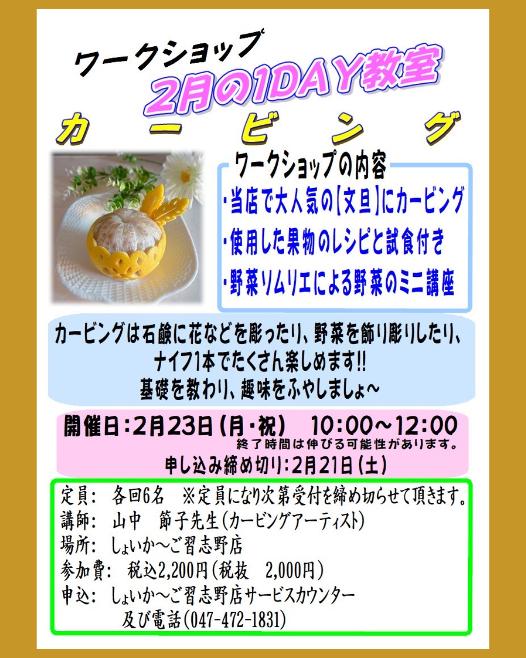 2月23日(祝)10:00~ しょい~ご習志野店さまにて